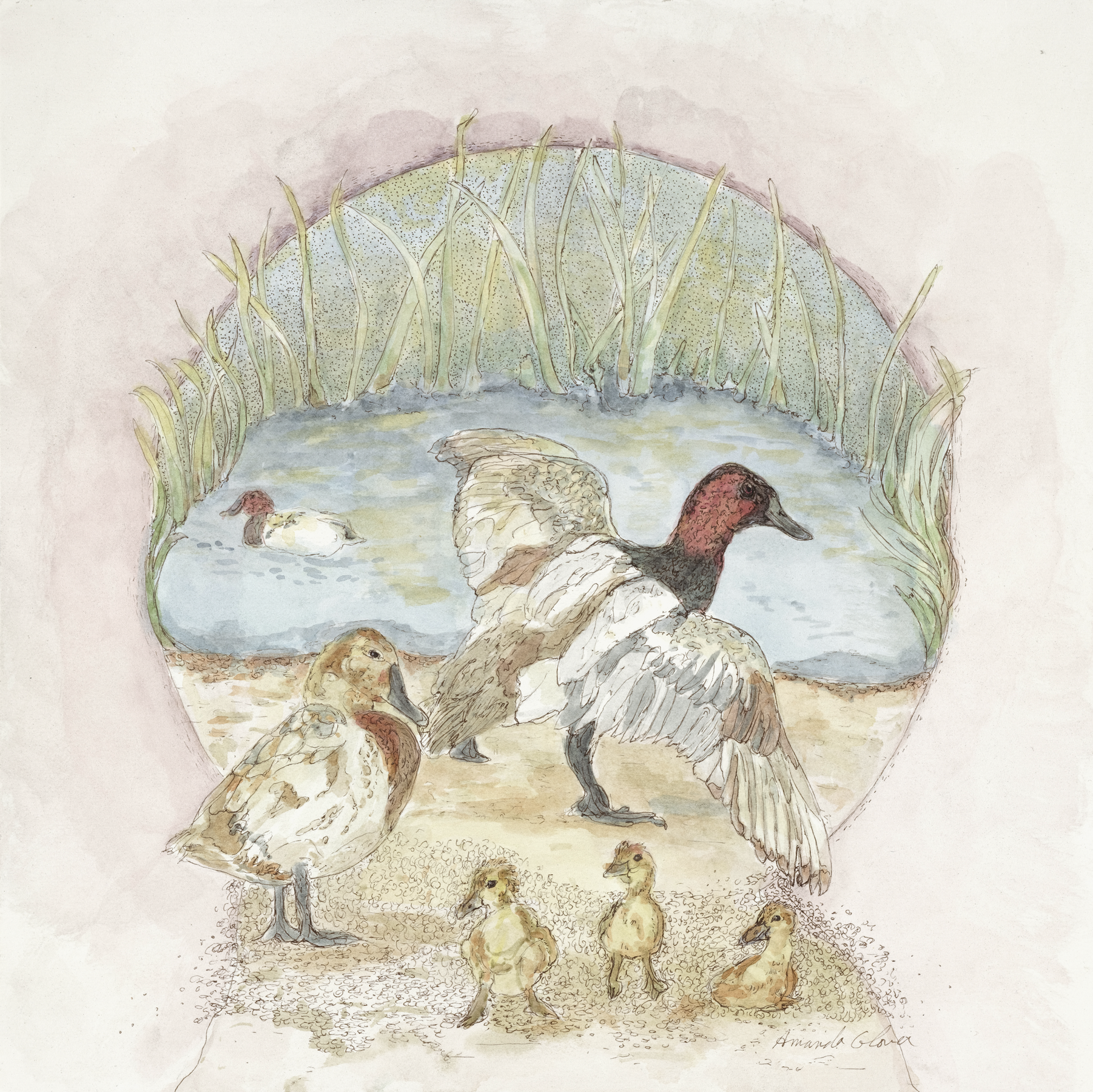 12x12 on 140lb. hot press with ink, graphite and watercolor. Free shipping, ships flat no frame.